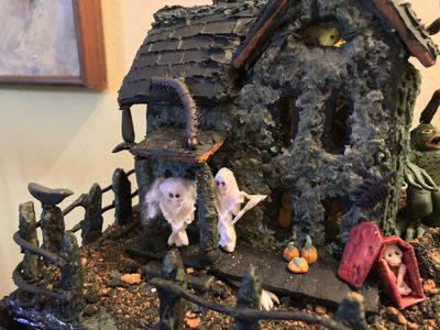 My 6 yr. old grandsons are so sad that Halloween isn’t taking place this year that I wanted to make them a spooky house to cheer them up a bit ..... it also helped take me away from the sadness that is surrounding all of us this year ! Thank goodness for gingerbread houses !!! |