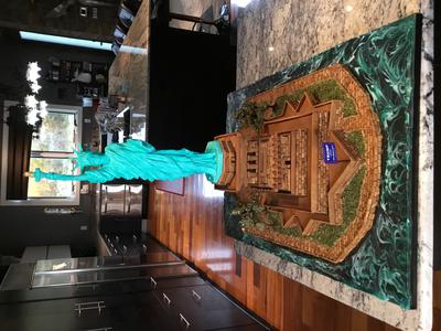 This years gingerbread house do the Statue of Liberty. Lady Liberty is out of layers of royal icing |