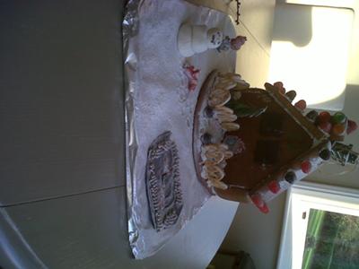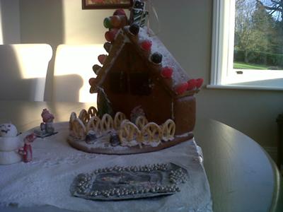 Having been worked on for days , our gingerbread house was finally complete !! All the way from Germany this gingerbread house kit has still made it so it was ready for making!!! We have put snow ( icing sugar ) on top of everything to make it look more christmassy !!! Enjoy and ......... MERRY CHRISTMAS!!!